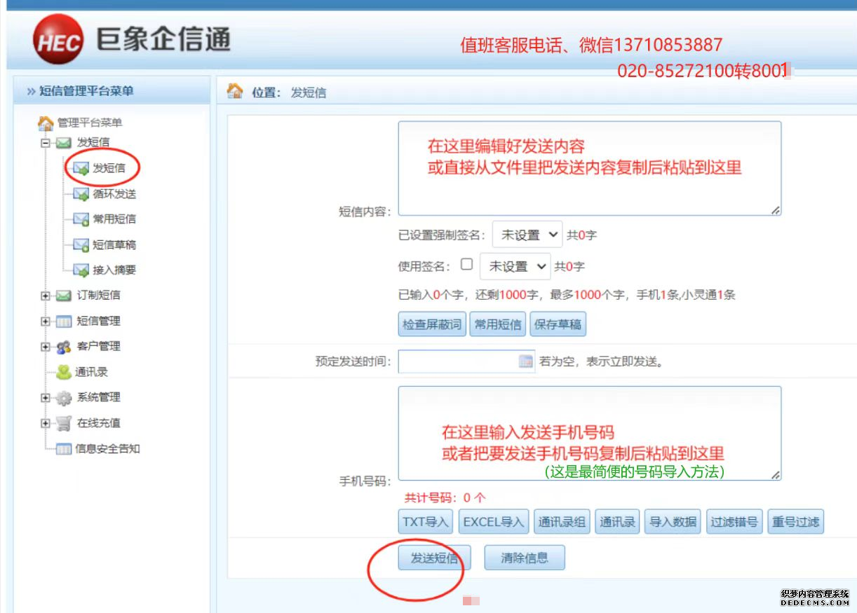 下面詳細介紹怎樣使用企信通批量群發(fā)短信: